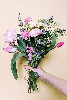 啓翁桜 / チューリップ / ラナンキュラス / スイートピー / サクラコマチ / カーネーション / コデマリ / ポリシャス / ユーカリ