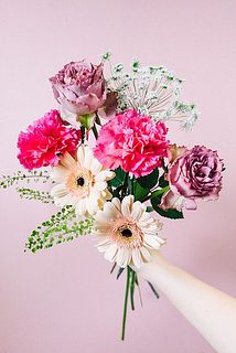 ポイントにピンクのカーネーションやふんわりシフォンのようなレースフラワーを添えて✨☁️
