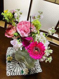 口の広い花器ですが、くにゃっとした部分に花がうまく収まってくれます。