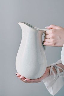 ぽってりと丸みのあるフォルムは、どこかアンティークのピッチャーのよう。お部屋に置くだけで素敵な雰囲気にしてくれます。持ち手があることで、水換えもしやすいデザイン。細部にこだわったそう。