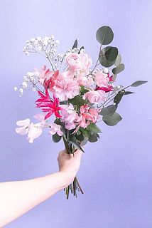 ダイヤモンドリリー / スプレーバラ / スイートピー / カーネーション / ユーカリ / かすみ草