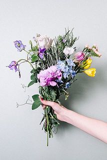 スイートピー / フリージア / リューココリーネ / トルコキキョウ / チューリップ / セントーレア / デルフィニウム / ユーカリ