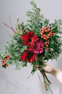ガーベラ / カーネーション / アメリカンホーリー / バーゼリア / サンゴミズキ / ひむろ杉