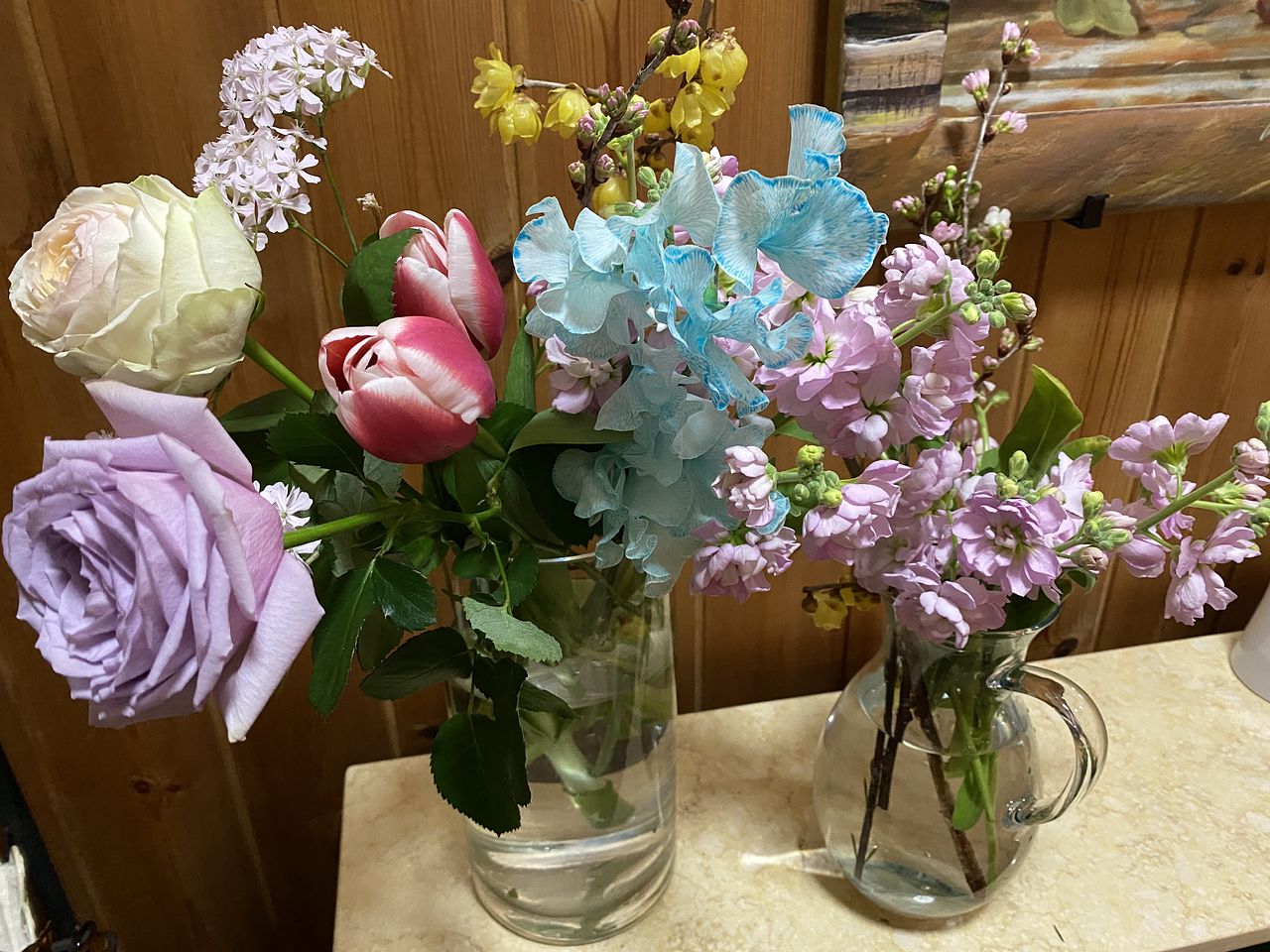 春らんまんのブーケ届いて開いたらお花の香りが部屋中に広がってとっても嬉しくて 二つのガラス瓶に飾りました ただ人工的なブルーのスイトピーの色が合わないように思います できれば黄色のフリージャーを代わりに入れて貰えば完璧に春爛漫かと… でもでも、嬉しいです💕 ありがとうございます