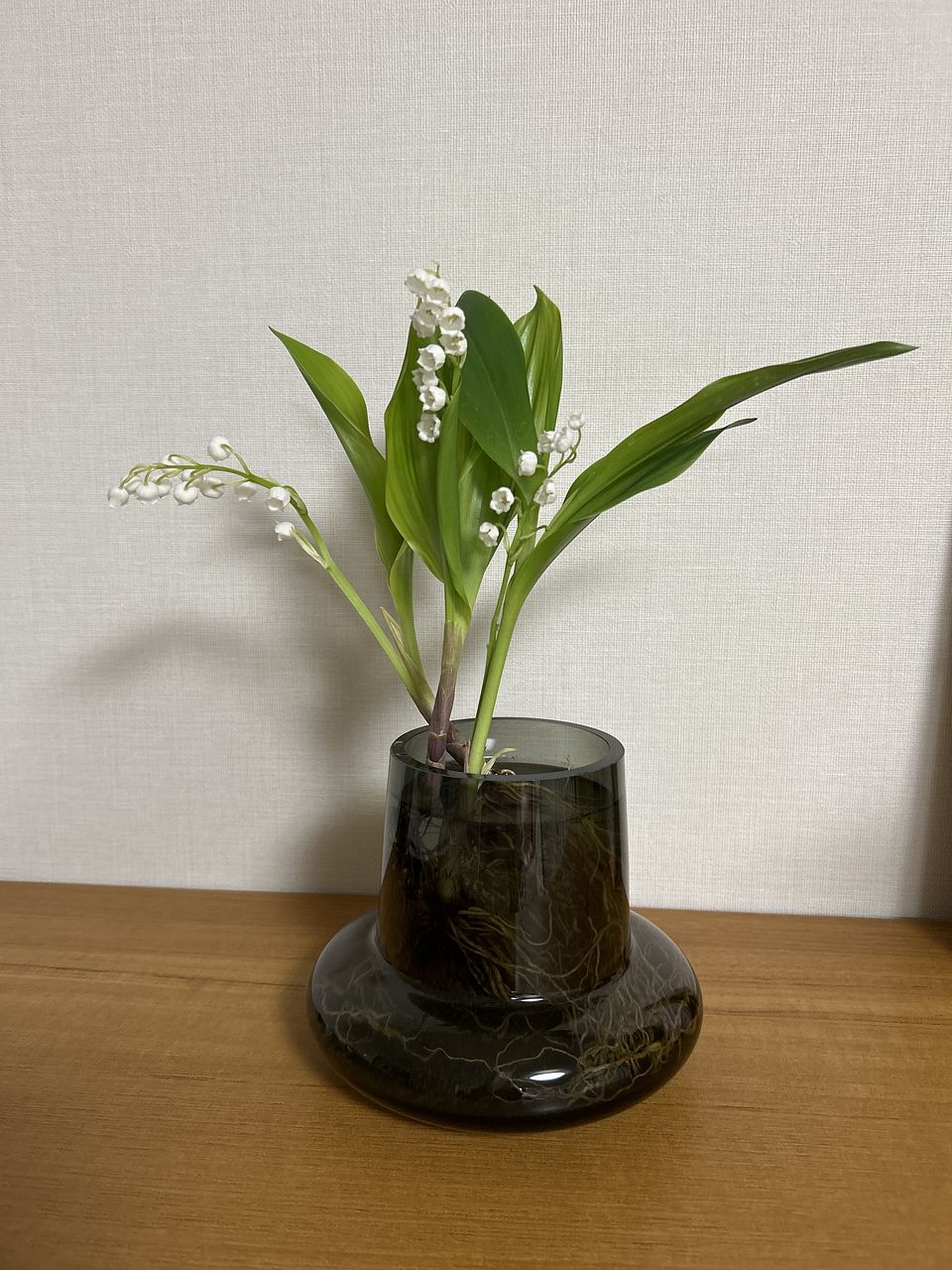 そしてぜひトライしてみてほしいのが、アイビーや豆の花などのしなやかなグリーンを飾ってみること。キッチンカウンターやちょっとしたコーヒーテーブル、棚の上など少し高さのある場所に置くと、いい感じに葉っぱが垂れてなんともおしゃれな雰囲気に。口が広く、高さを低めに抑えたデザインだからこそできる楽しみ方です。底が広く安定感のある形は、ペットや小さなお子様がいるお家でも使いやすくおすすめです。