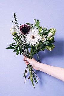 ガーベラ / 芍薬 / シンカルファ / スノーボール / スカビオサ / アルストロメリア / スプレーカーネーション / グレビレア / シルバーブルニア / ロシアンオリーブ