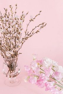 啓翁桜を9〜10本、スイートピーを7本、合計16〜17本お届けします。2束まとめて飾っても、それぞれに分けて飾るのもおすすめ。