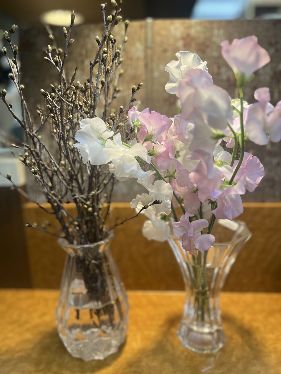 桜は10本。全て蕾みでしたが少しずつほころび始めてきました。枝は細すぎず太すぎず家の中に飾るにはちょうどいい太さで長さもちょうどいいかな?気持ち長くても良かったかな?蕾みがいっぱいで満開になったら絶対かわいいやつ。スイトピーは8本。白4本、薄いピンク4本。茎長め。お花もたくさんついていてかわいい。これは買ってよかった。2つセットで楽しませていただきます♪
