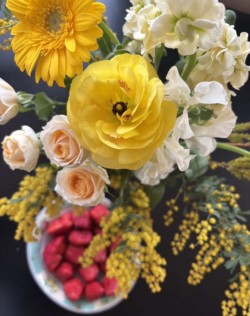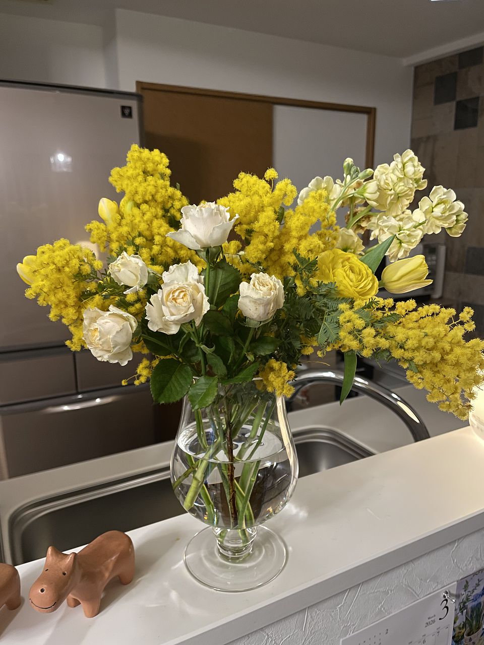 ミモザがほとんど咲いてませんでした。3日で固く萎んでしまって残念でした。