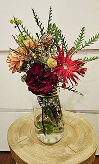 赤鬼をイメージした赤と黄色の花を中心に、豆をイメージした実物、枝物を添えた節分用のブーケです👹