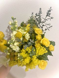 今しか楽しめない旬のミモザに、春のイエローカラーの花々。イエローのグラデーションが魅力的😍