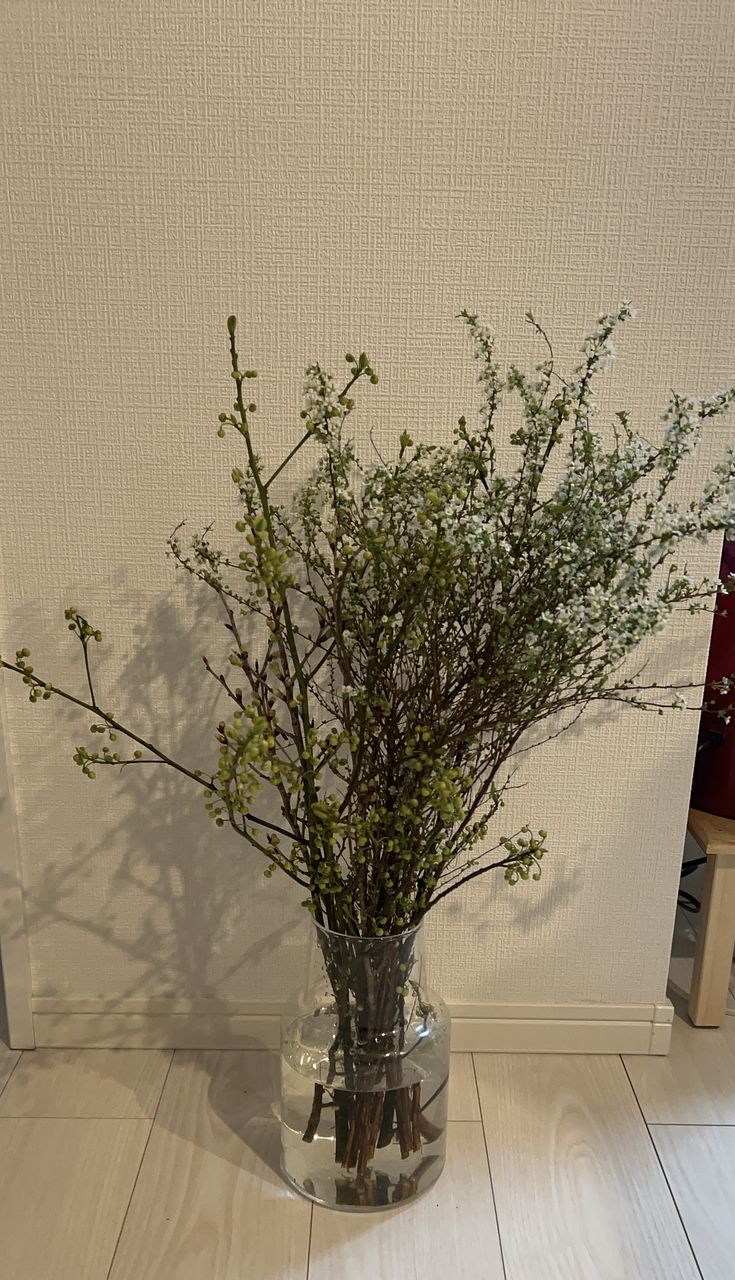 我が家の花瓶に丈も丁度良く 廊下で楽しんでいるのですが、雪柳の花が満開となり、とても見応えがあります。桜の枝は少しの雪柳と合わせ別花瓶でその上部に飾りました。あおもじが少なくちょっと残念でしたが、、、