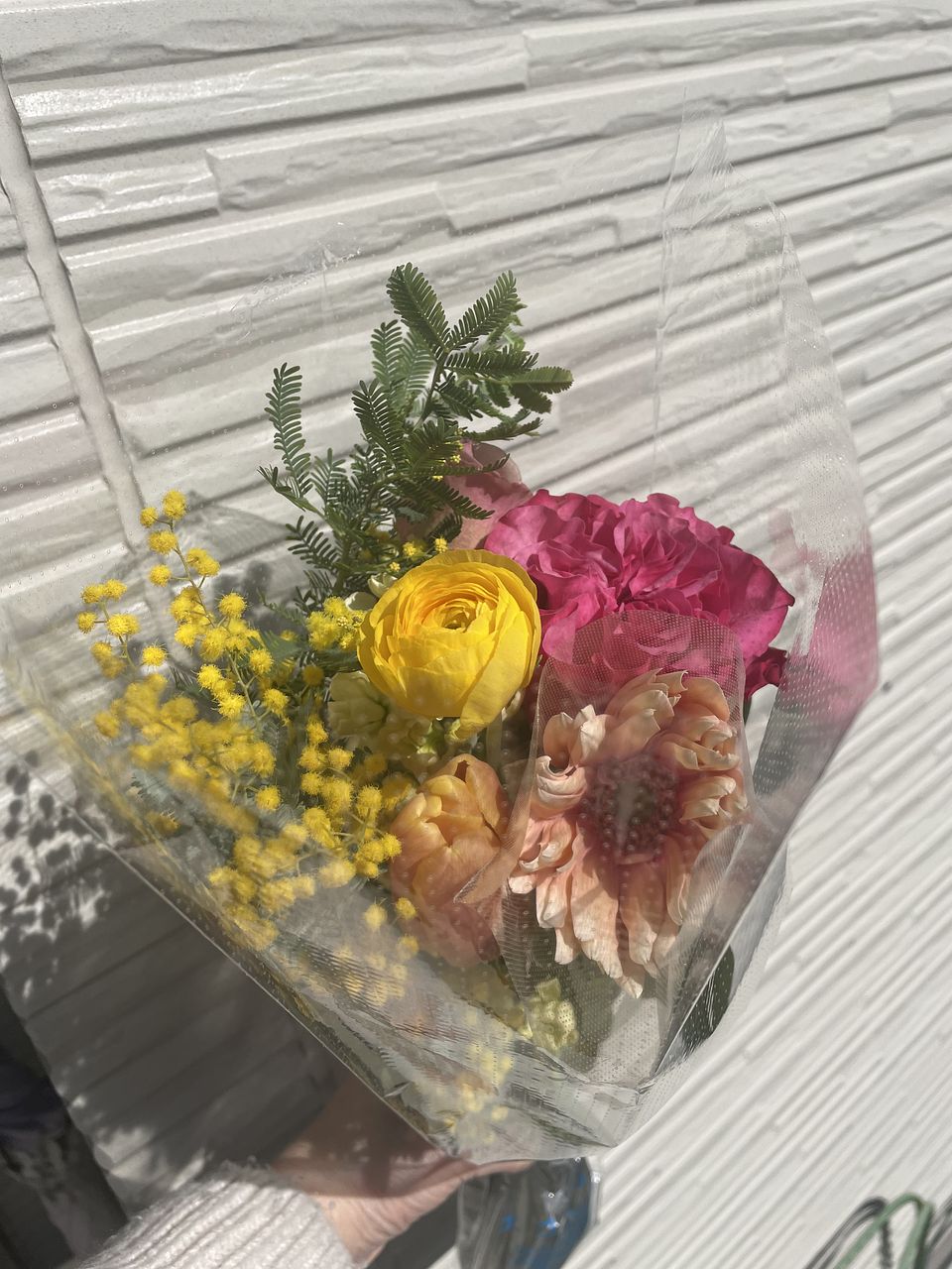 色とりどりのお花に春の兆しのミモザが可愛くて お客さまも楽しんでくださっています 甘い香りも、うっとりします。お写真を撮って帰られました