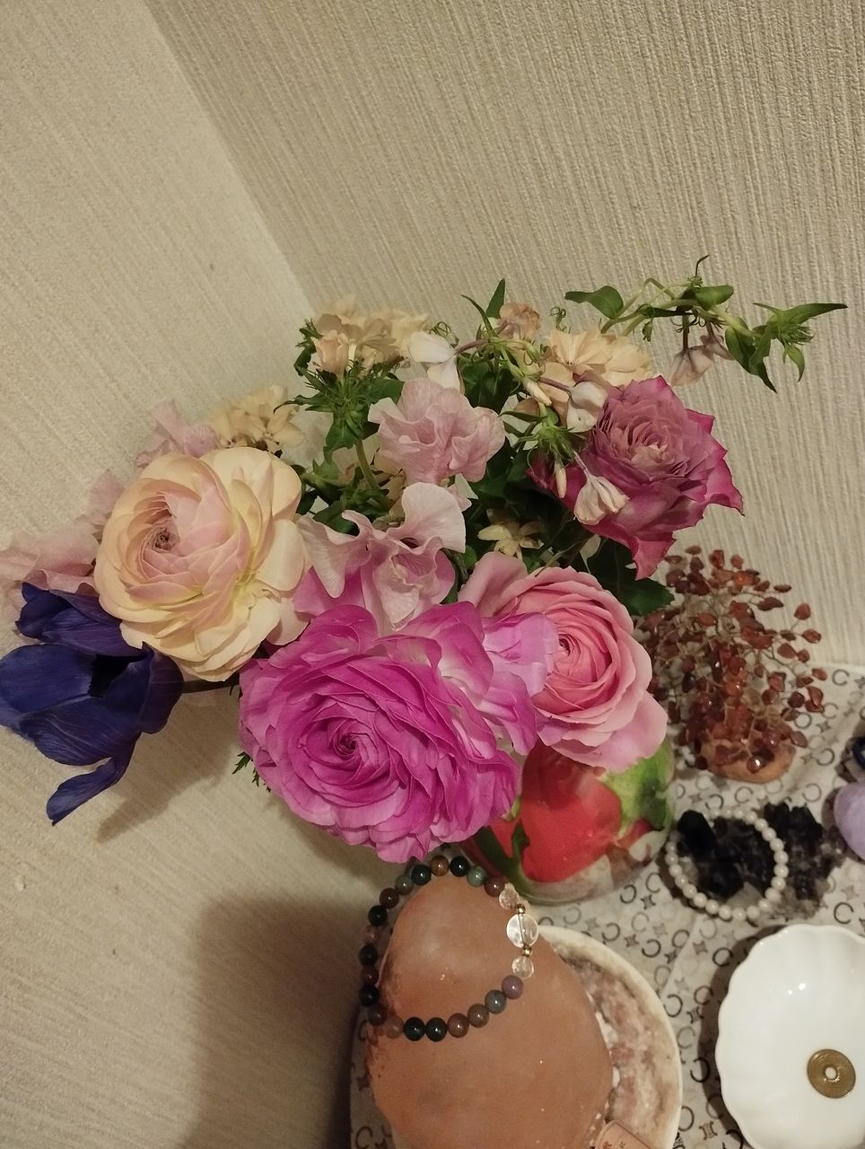 ピンク系の春らしいお花が届きました。 一緒に花瓶も購入しました。再販を待っていたので購入できて嬉しいです。 最近フラワーさんでたくさんお花を購入したので、少し落ち着かなきゃと思ってた矢先、また購入しちゃいました(笑) お花のある生活はいいですねぇ♪