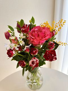 今日もいいことがありますように。そんな気持ちを込めて、ちょっぴりお得なおまかせブーケをご用意しました🤫