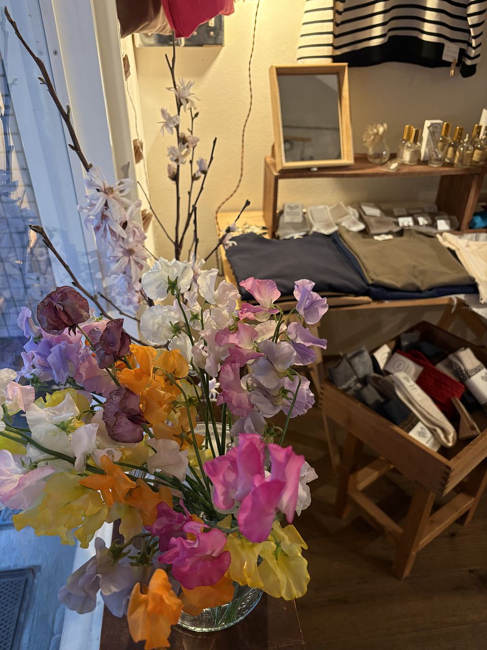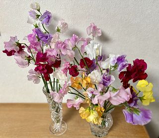 届いたフリージアの色は、冬から春へと変わる色のパステルカラーの組み合わせに黄色が、アクセントに成っていました。届いてからは、パステルカラーと濃いめの色に別けて生けて居たのですが、全部一緒に生けたら良いかもと水替えの時に生け変えました。近くのフラワーショップ(ショピングモール内)のスイトピー(5~6本)の花茎(背丈)は、こちらのFLOWERのスイトピーの花茎丈より、短かったです。(私の希望としては、見本の写真の様なワインレドの色が、欲しかったですが、フローリストさんが、選んでくれる色合わせも、また、違って、良いです🥰
