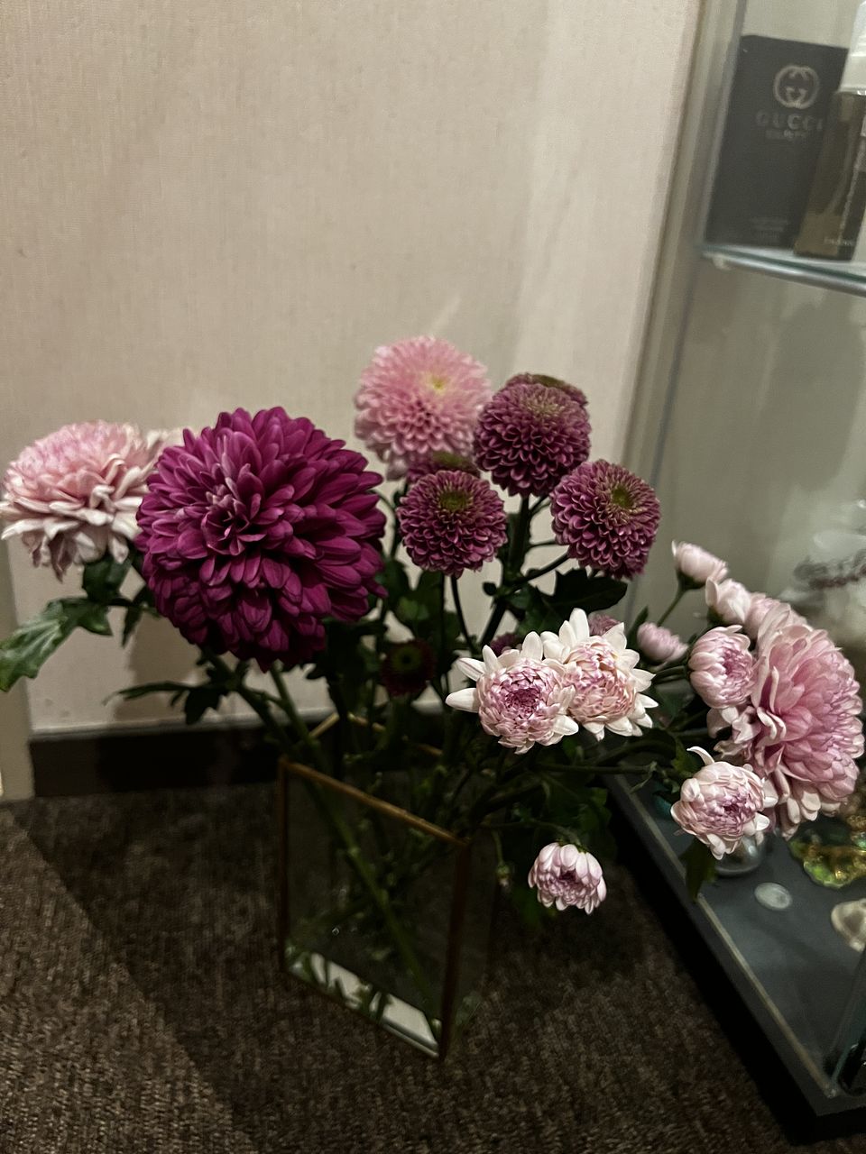 ボリューム満点の色とりどりのマムが届きました! 玄関に飾ってますが、空間がとっても華やかになって嬉しいです☺️
