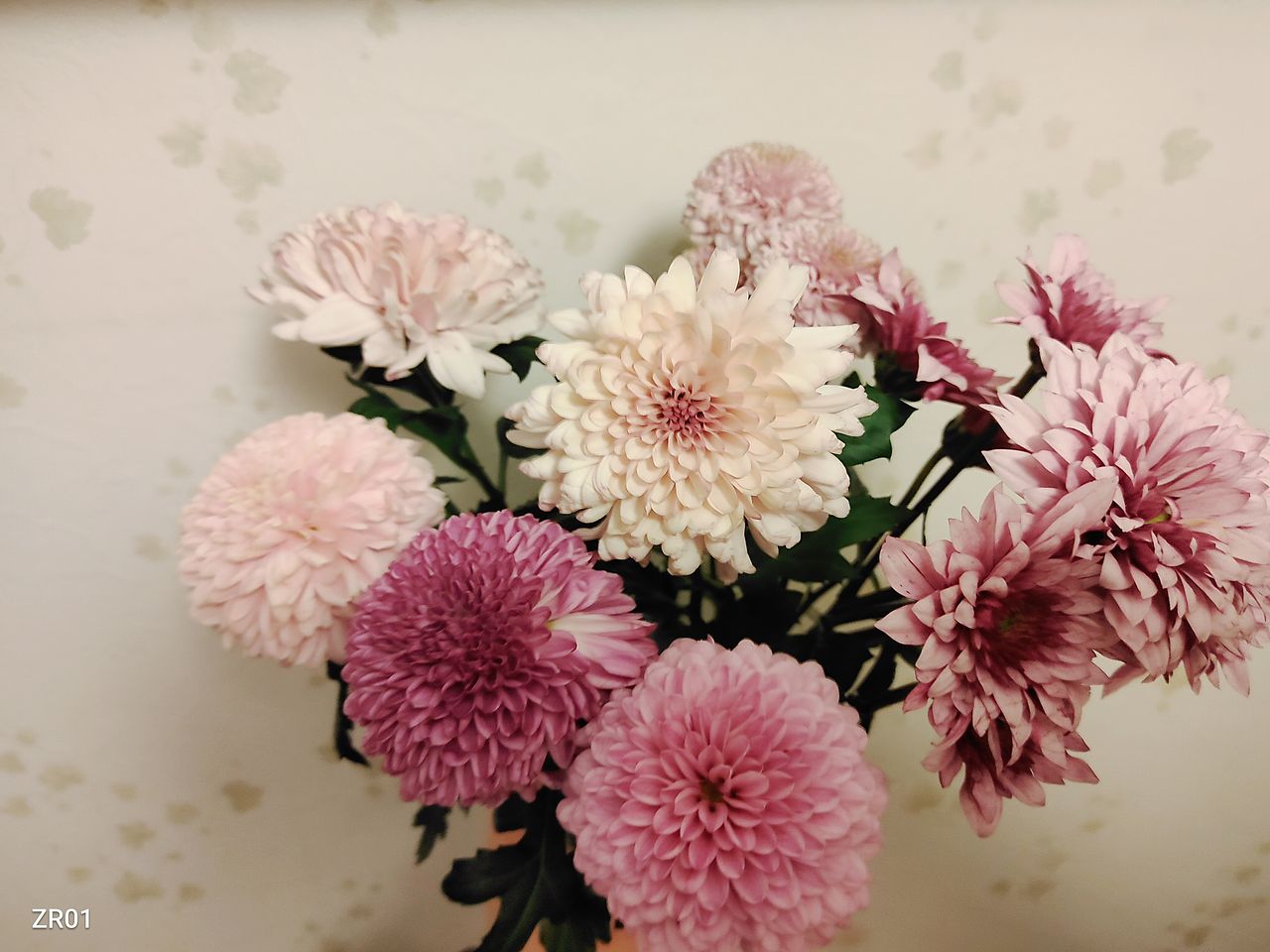 ネットから解放してあげると、大輪のマムは見事でしたー♪濃いピンクと ベビーピンクはとても可愛い🩷