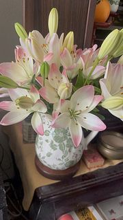 今回法事のため注文、無事到着しました 。画像では白い百合でしたが若干クリーム色味なのでイメージが少し違う印象でした。 ただ一般店舗には販売されていない小ぶりな百合で貴重な花だと思います。 これから水を吸い上げて春らしく沢山開花してくれることを期待します…。