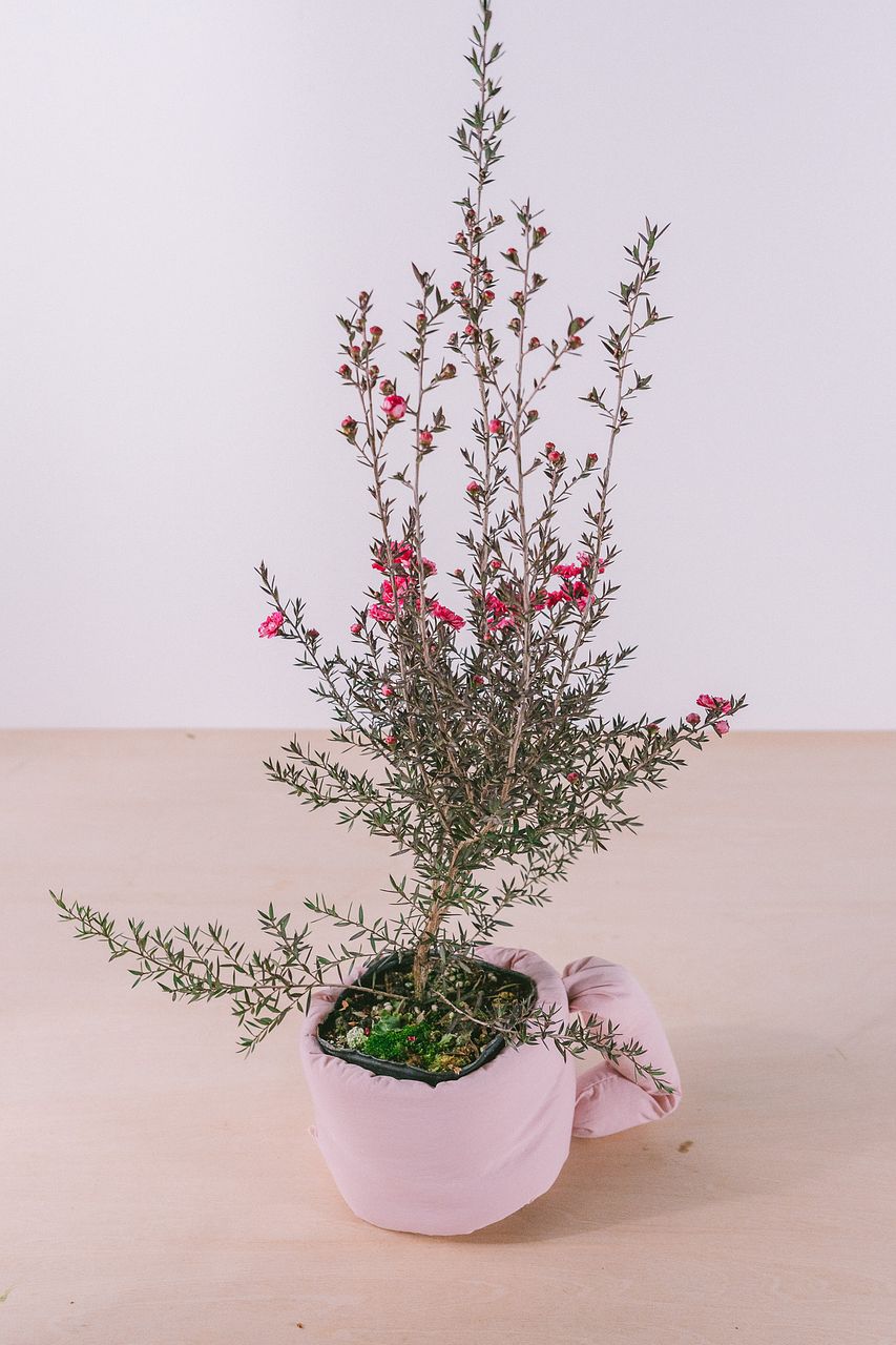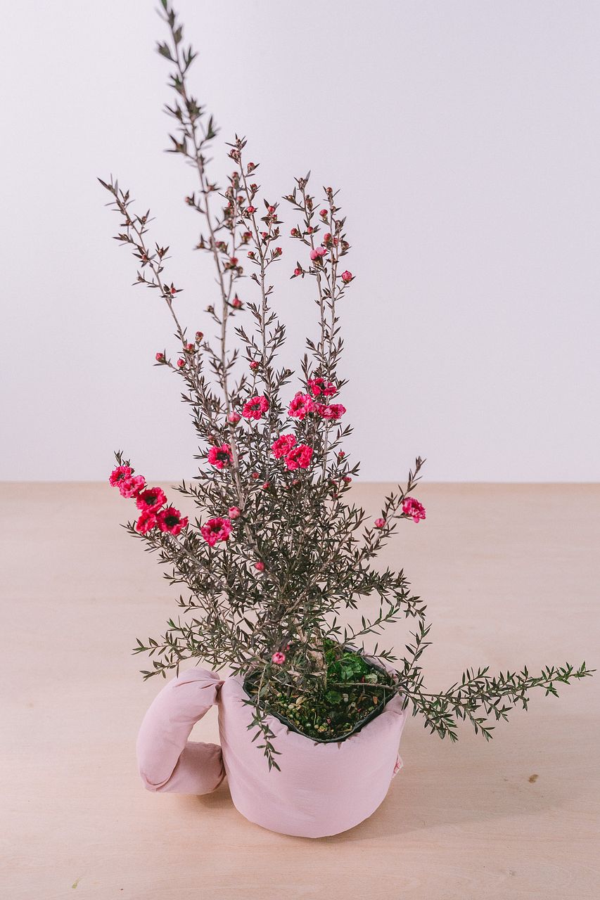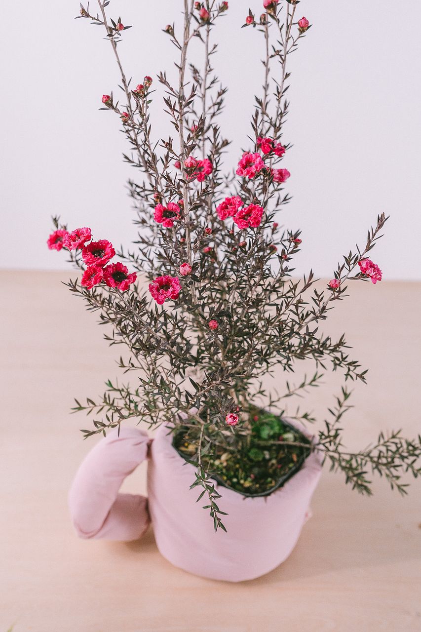 ふわふわマグポットはポリエステルと綿素材でできた優しい手触りのポットで、内側にはプラスチックのカップが入っているので水を入れて花器としてもお使いいただけます🌸