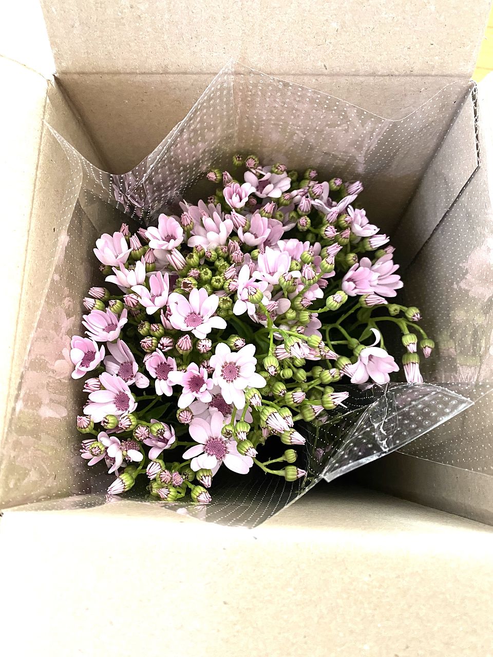想像していたよりもボリュームは少なかったですが、可憐でとても可愛かったです。 葉の大半に砂のようなものが大量に付いており洗っても落ちにくかったので葉をたくさん取り除きました。 毎日水を取り替えて水切りもしましたが蕾はほぼ開花しませんでした。