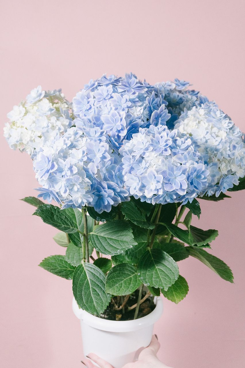 アジサイにかぶせてある小さな穴開きの透明なビニールを、ハサミ等で傷つけないように注意しながら切って取り除いてください。紫陽花は長旅でお疲れ気味、しっかり水やりをしましょう。バケツに水を張って下から給水する腰水が有効です(その場合、受け皿は外してから水やりしましょう)。