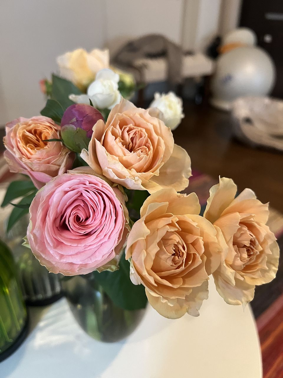 甘いピーチミルクのようなカラーリングの芍薬とバラを贅沢に束ねました🍑🐮
