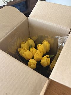 先ほど届きました。 とてもキレイな黄色のチューリップです。
