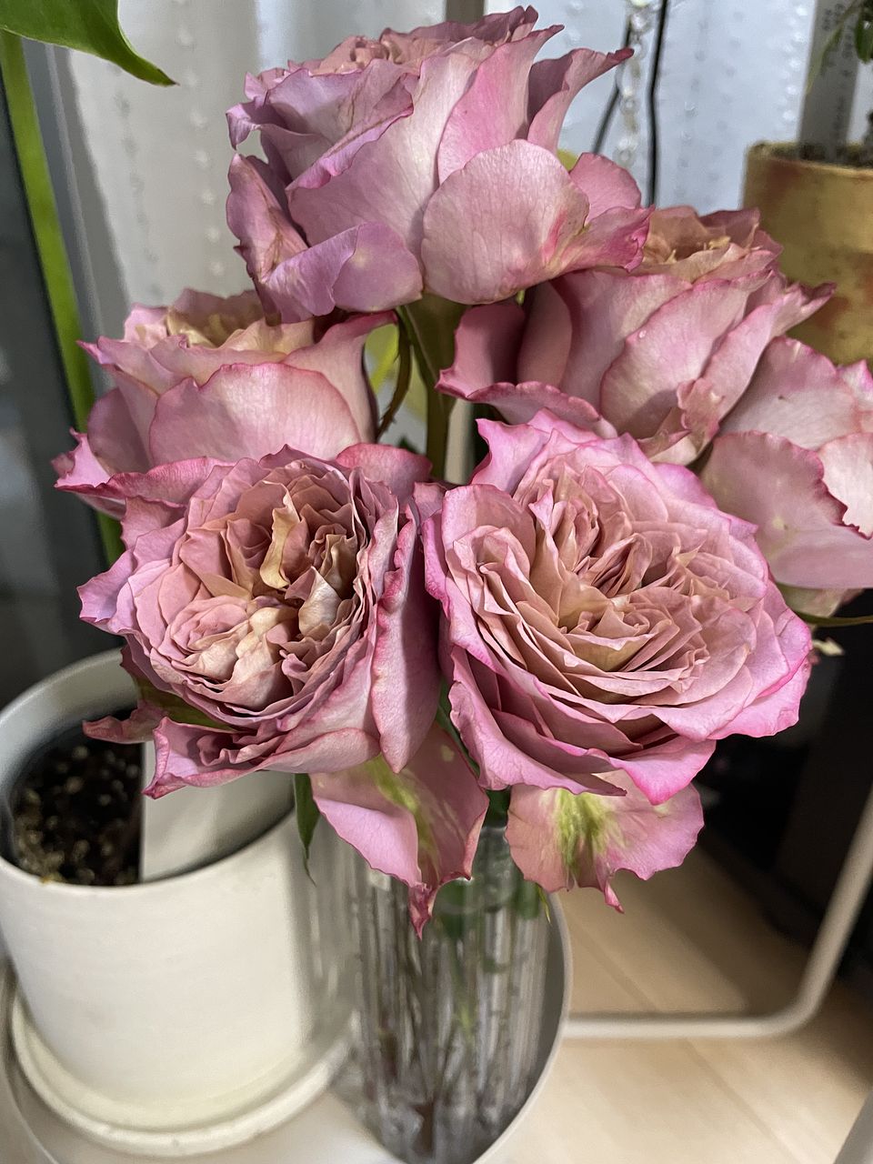 茎が細く水が下がり気味なのかも知れませんが、花びらの巻きや形などやや残念な部分が目立ちます。