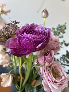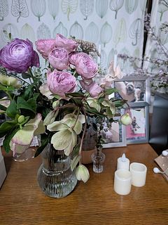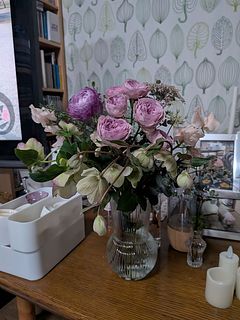 クリスマスローズ2本は期待以上の良い状態でした。残念だったのは薔薇で、開花して時間が経っていたようで到着時既に満開、2日で終わってしまいました。サンプル写真の濃い紫のカラーはラナンキュラスになっていましたが、ここは好み的にラッキーでした。