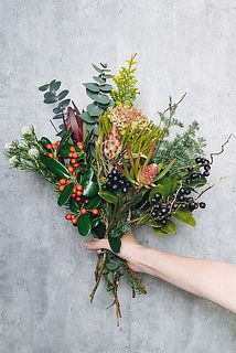 森に住む動物たちが作ったようなかわいさ!実ものをたっぷり使ったクリスマスブーケ🐿 アメリカンホーリーの葉っぱはトゲトゲしているのでご注意を。ドライにもぴったり。
