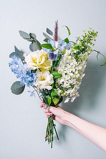 柏葉アジサイ / トルコキキョウ / ケイトウ・グリーンサム / デルフィニウム / パープルファウンテングラス / パニカム / 利休草 / ルリタマアザミ / ユーカリ