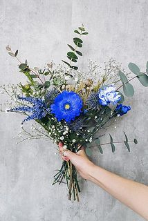 かすみ草(ラメ付き) / エリンジウム / スプレーカーネーション(染め) / アスチルベ / リューカデンドロン / ガーベラ / スプレーブルニア / ユーカリなど