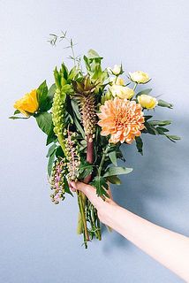 パイナップルリリー / クルクマ / 山ゴボウ / クルクマ / マム / バラ / アルストロメリア / ユーカリ / アップルミント / ローズマリー